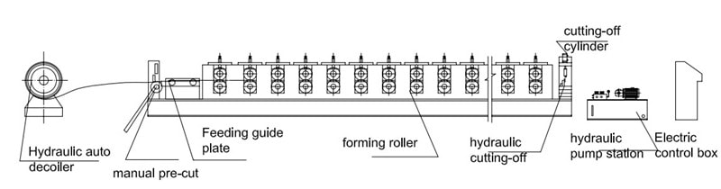 開(kāi)卷→上料→成型→量長(zhǎng)→自動(dòng)切割→成品接收